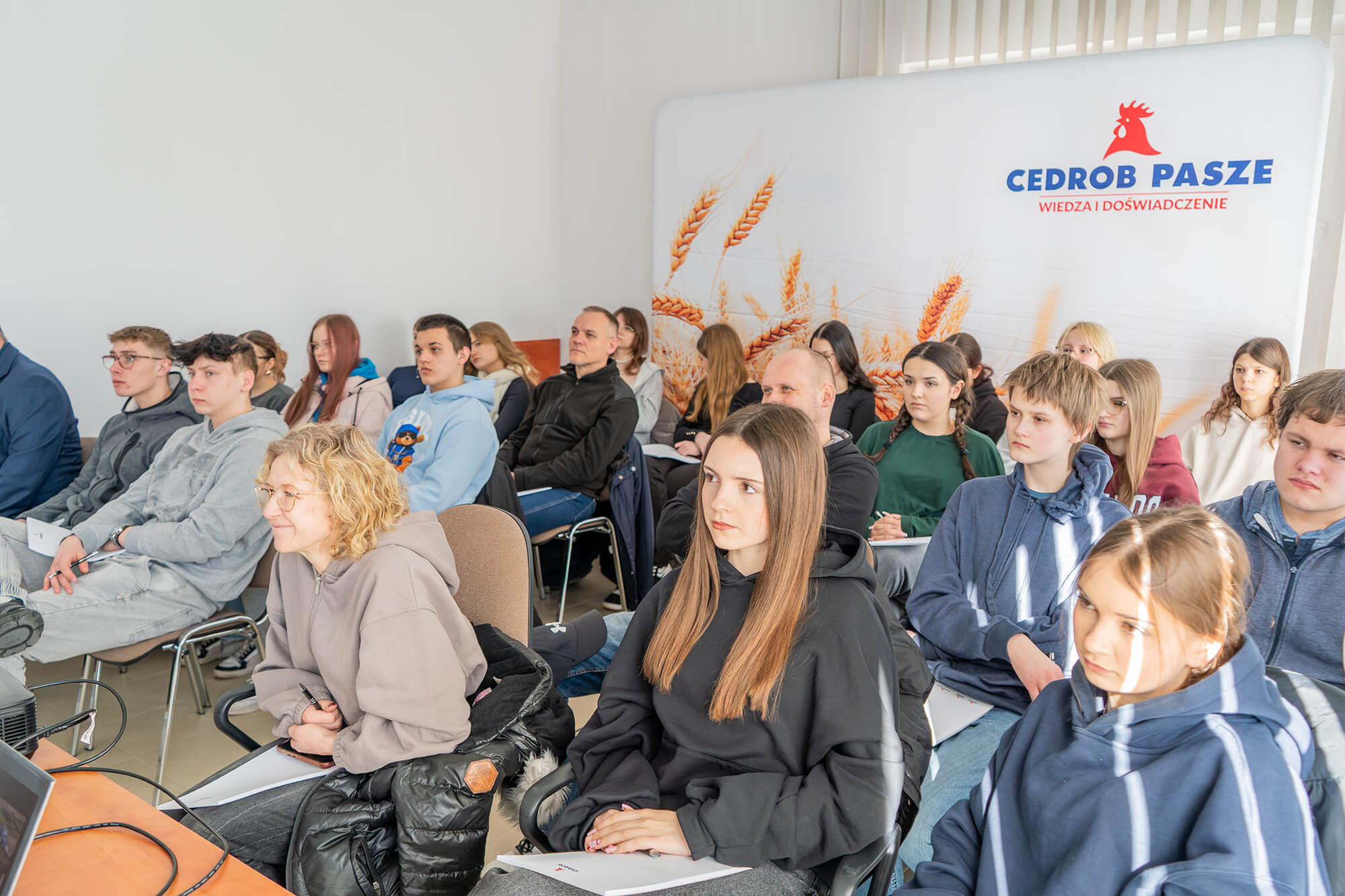 Gospodarzem spotkania był Tomasz Walerowicz, dyrektor generalny Zakładu Produkcji Pasz Cedrob S.A., który przywitał młodzież oraz opowiedział o roli zakładu w strukturach firmy i znaczeniu zaawansowanej technologicznie produkcji pasz w dzisiejszym rolnictwie. Podkreślił, jak istotne jest łączenie innowacyjnych technologii z doświadczeniem i wysokimi standardami jakości.